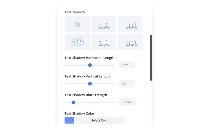 Adding and customizing text shadows is easier than ever thanks to Divi’s shadow presets and a full range of text shadow controls.