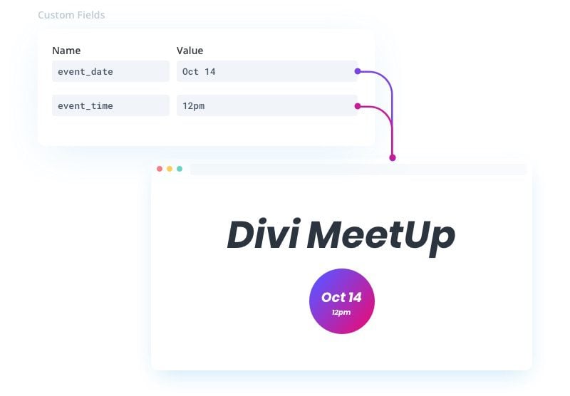 Not only does Divi support that use of standard dynamic WordPress content, it also supports the use of custom field data. Whether you have created your own custom fields, or registered a new custom field with a plugin like Advanced Custom Fields, that dynamic data can now be used within the Divi Builder and connected to any module content area. Whenever you update the value of the custom field, the module will update itself automatically. This allows you to control any kind of content on any part of your website without actually opening the Divi Builder.