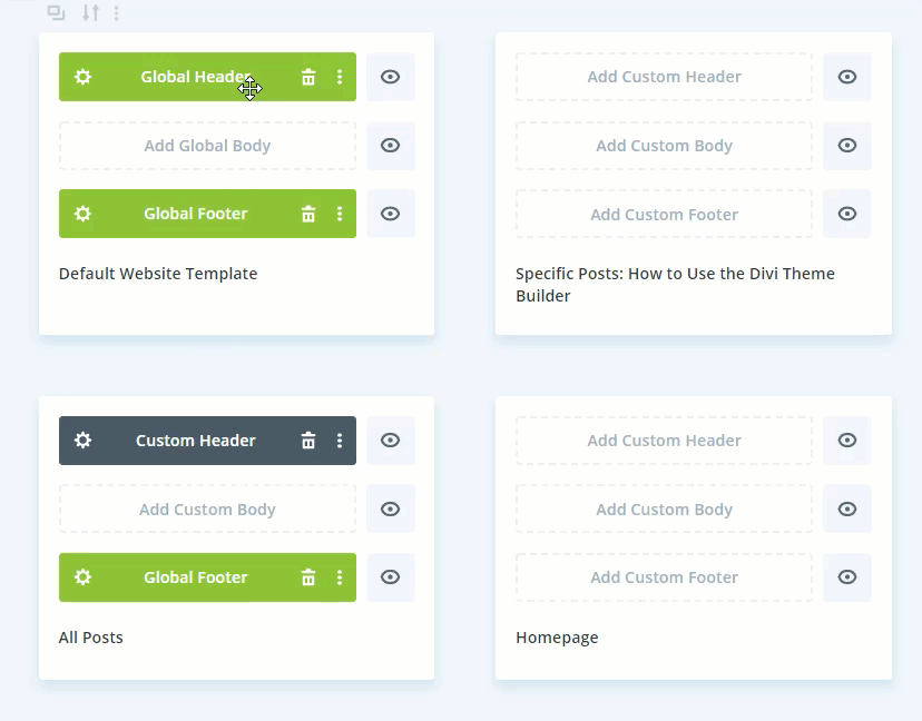 However, you don’t have to keep that Global layout on your new template. You can use the Template area options to delete the layout and build a new one from scratch or disable global and tweak the layout for the specific needs of the layout.