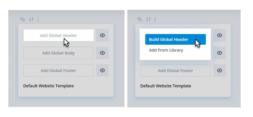 If you would like to add and build a new global header for your website, click the “Add Global Header” area and then select the option “Build Global Header”.
