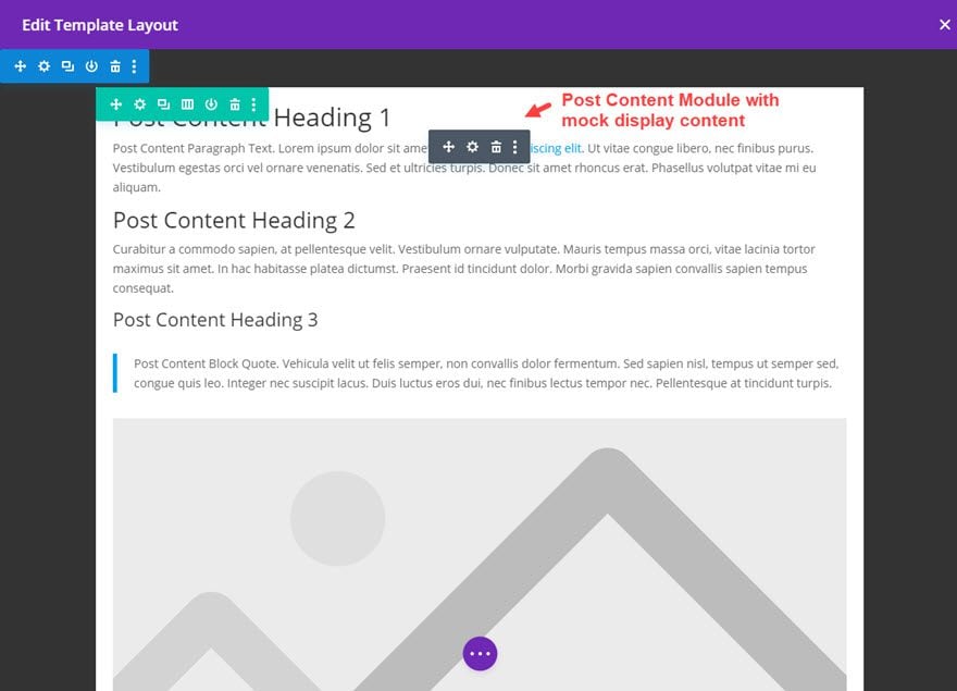 The post content module conveniently displays mock content to make it easy to add styling to the content in anticipation of the actual content for all pages and posts.