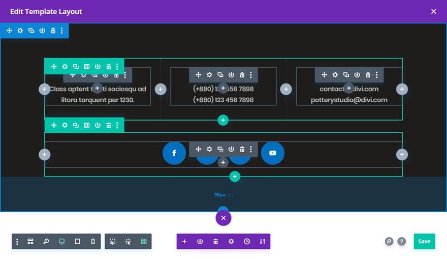 Then use the power of the Divi Builder to design the footer within the Template Layout Editor. Don’t forget to save the layout.