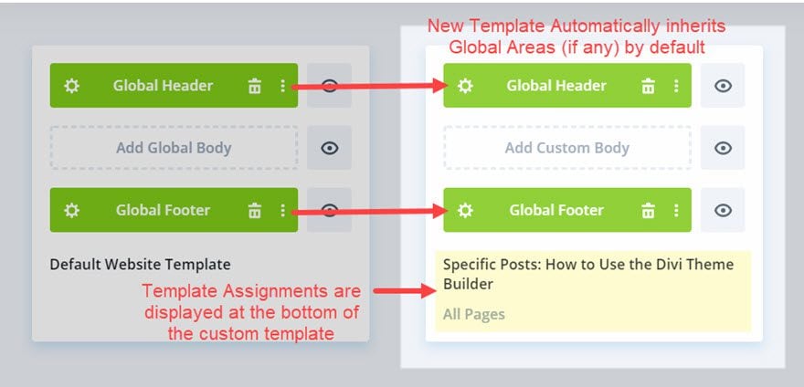 If the default website template has global template layouts added to any of the three areas, those global layouts will automatically be added to the new template.