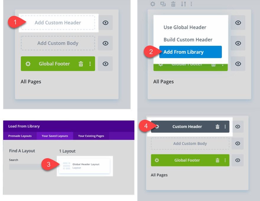 - Design a global header/menu for you entire site from scratch using the Divi Builder.