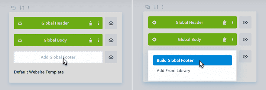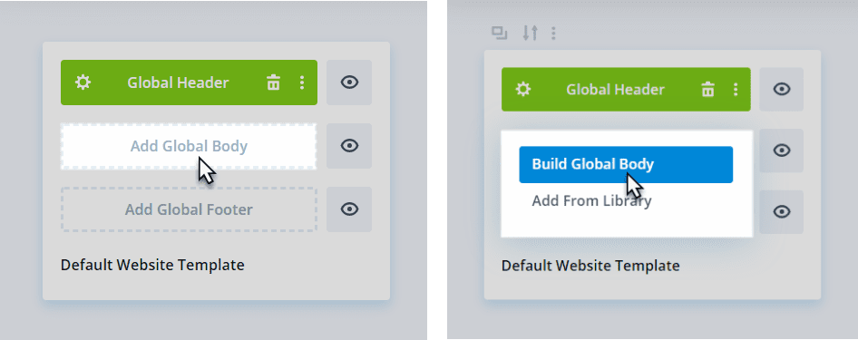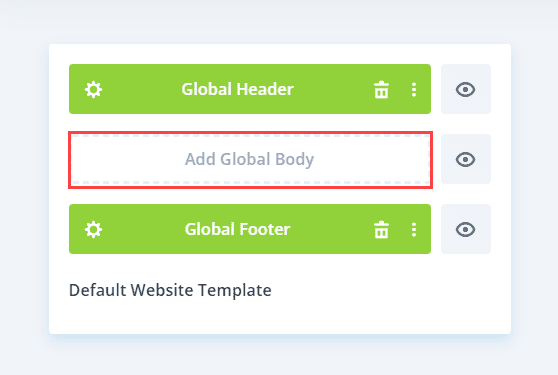 To add a Global Body to your default website template, simply click the “Add Global Body” area and then select the option “Build Global Body”.
