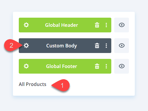 To do this, simply create a new template and assign the template to “All Products”. Then add a custom body to the template and click to build the body layout using the template editor.