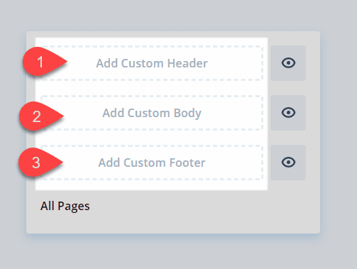 Just like the default website template (or Global template), a custom template will also have the following areas: Header, Body, and Footer.