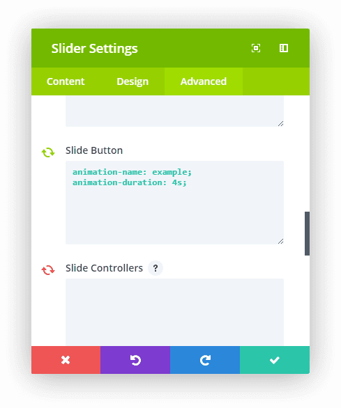 This same theory could be applied to the options in the “Advanced” tab as well. Let’s say that you have created a Slider Module and applied a unique animation to the slider’s button. You want to use this new unique animation on all of the Slider Modules on your website. In this case, you can create a new Global Slider Module and selectively sync the Custom CSS for the Slide Button (which includes your custom CSS animation).