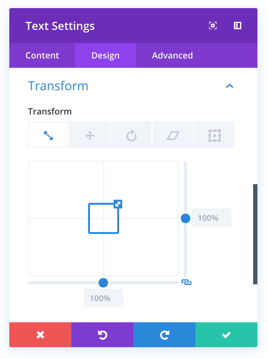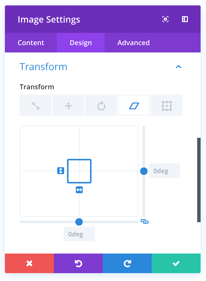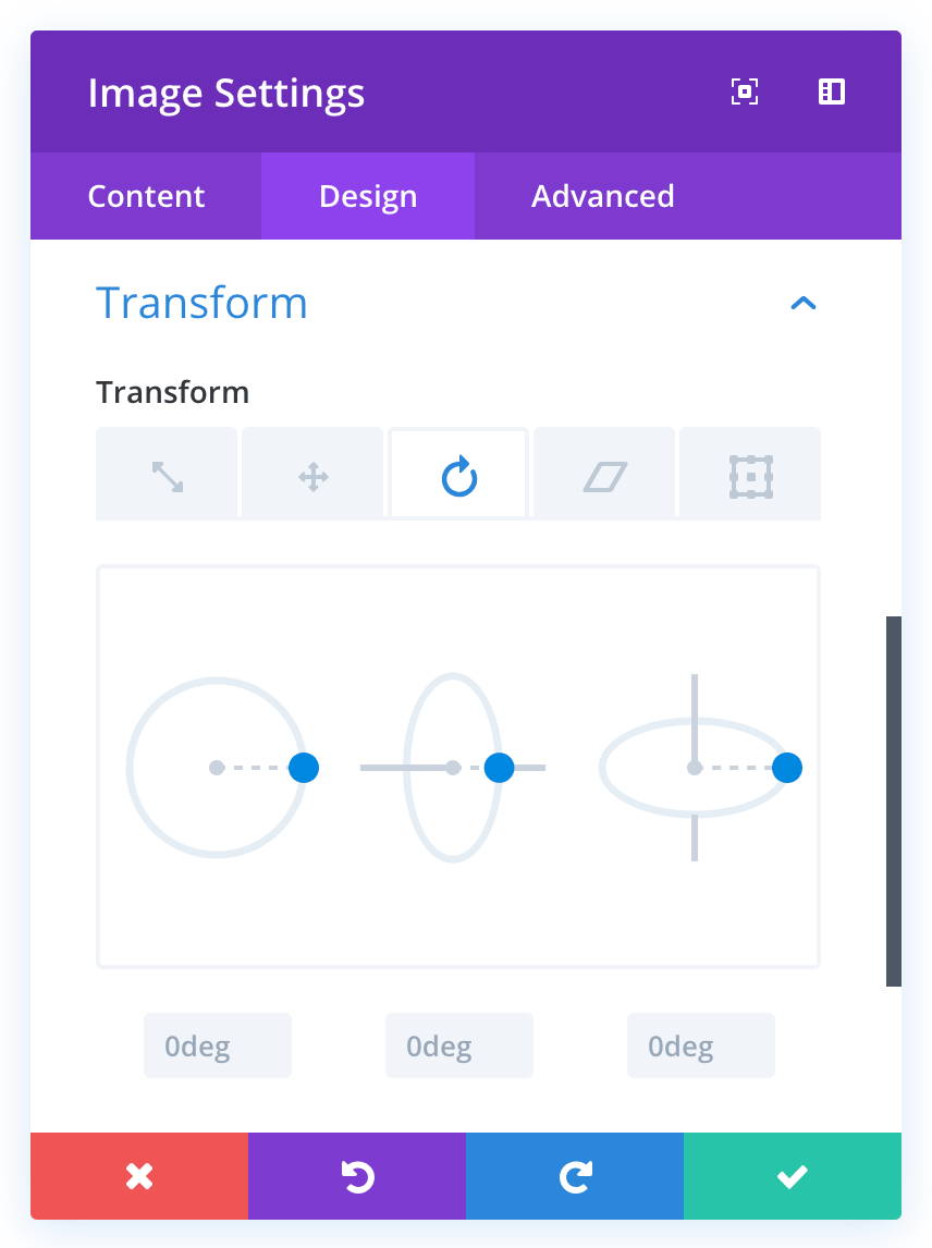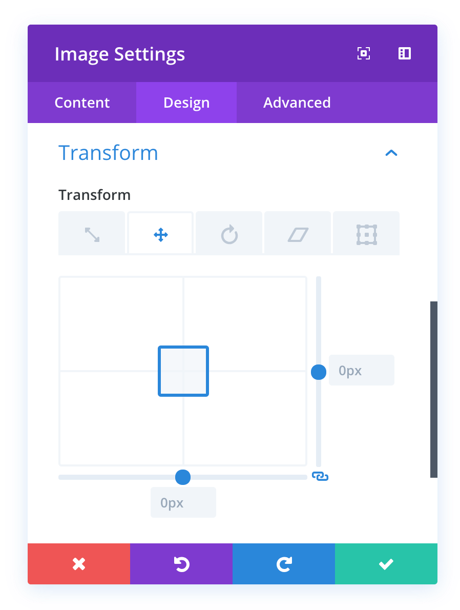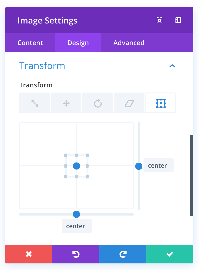 Hooray! No more writing brain-wracking CSS transform code in the Advanced tabs! 🙂